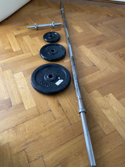 + 2x male šipke za bučice plus set utega 90 kg