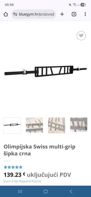 Promjer rukohvata: 25mm (ukupno 6 hvatišta, unutarnji raspon između hvatišta je 74 cm)