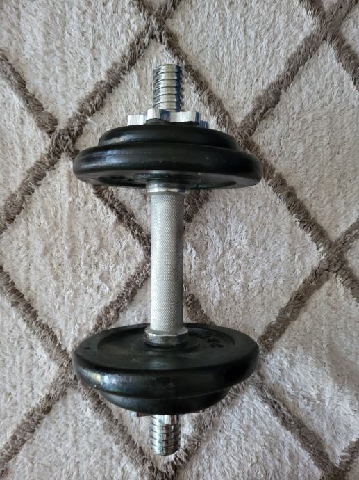 Uteg jednoručni sa podesivim težinama (2,5kg bez bućica, 5kg i 10 kg).
