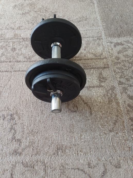 Uteg se sastoji od čelične šipke težine 2kg, dva diska od 2kg te četiri diska od 1kg.