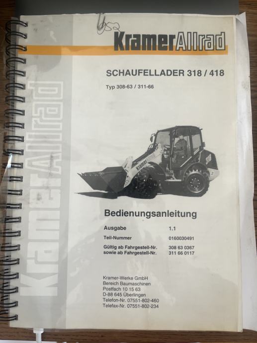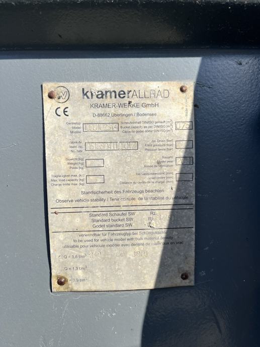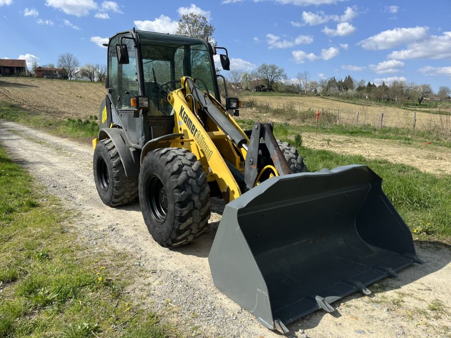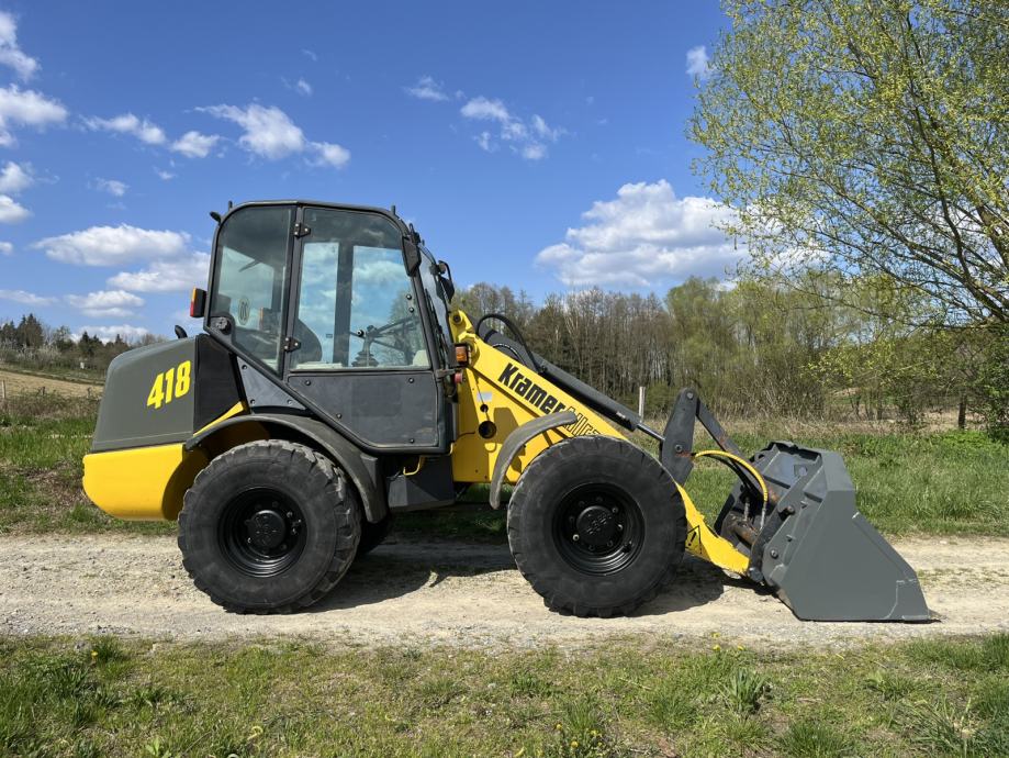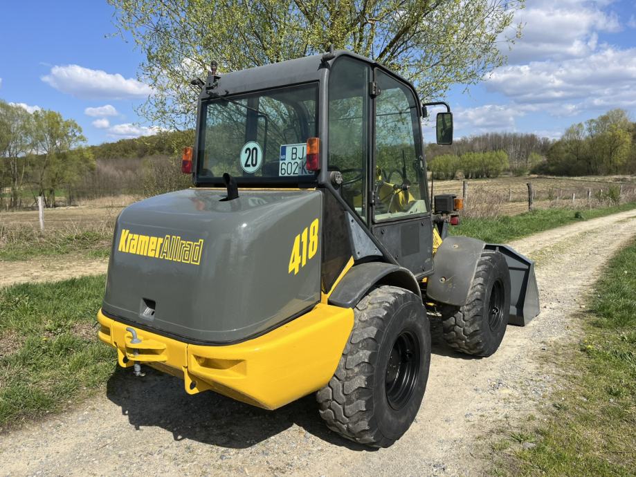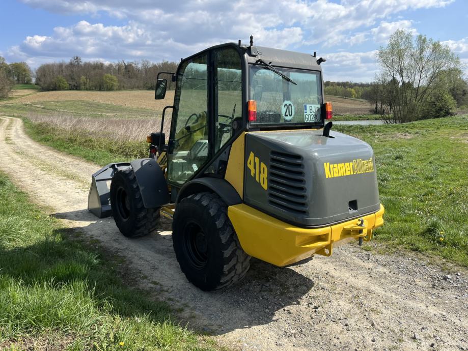 Kramer 418 Allrad utovarivač u dobrom stanju, 2000. godina proizvodnje. Uz utovarivač idu vilice te gotovo nekorištena korpa, proizvedena 2011. godine. Zapremnina korpe 0.75 kubika. Težina stroja 4300 kg, motor 43kw.