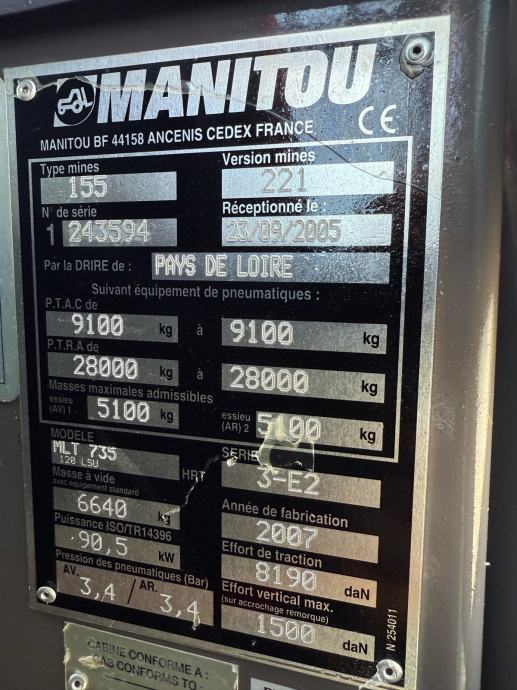 Manitou mlt 735 120lsu 2007g 4 x ista telehender