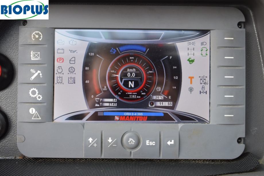 Očitavanje sa stroja pokazuje niski hidraulični rad do sada, koji iznosi 33 h. Iz toga slijedi da se stroj samo kretao. Ovaj Manitou opremljen je sa klima uređajem, rijetkim u ovom modelu, kao i webastom, električnim sjedalom, grijanim ogledalima i LED rasvjetom.