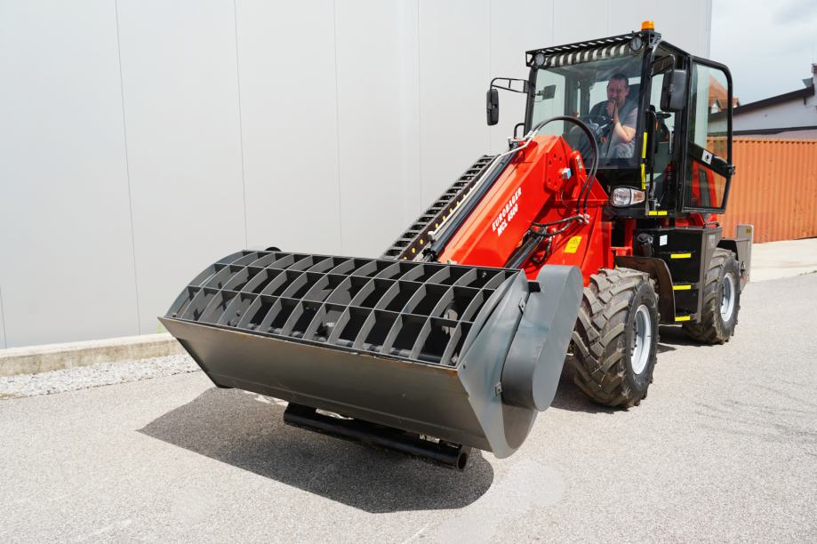 Teleskopski utovarivač MCL 4500 namijenjen je premještanju težih tereta na gradilištima, poljoprivrednim gospodarstvima i komunalnim površinama, gdje su potrebni doseg i precizna kontrola. Teleskopska ruka omogućuje podizanje paletnih vilica do 4,5 m i dizanje kašike do 6,11 m, pa stroj bez poteškoća doseže više točke pri utovaru, istovaru i pretovaru materijala. Stabilno podvozje, pogon 4×4 i hidraulični upravljač osiguravaju dobru upravljivost i na neravnom terenu.