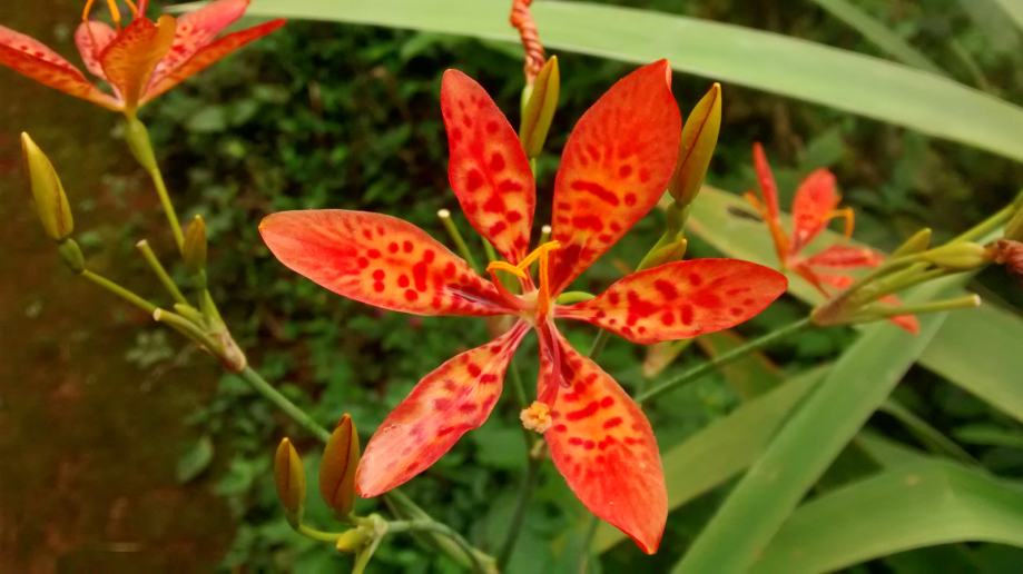 Listovi su oblika mača, poput lišća visoke bradate perunike. Belamcanda cvjeta tjednima, u kasno ljeto, a njena zanimljiva sezona produžuje se do jeseni sa zanimljivim sjemenkama koje se razvijaju.