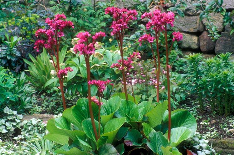 U proljeće se pojavljuju tamno ružičasto crveni cvjetovi na crvenim stabljikama.
