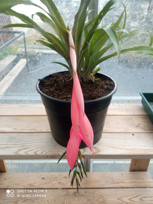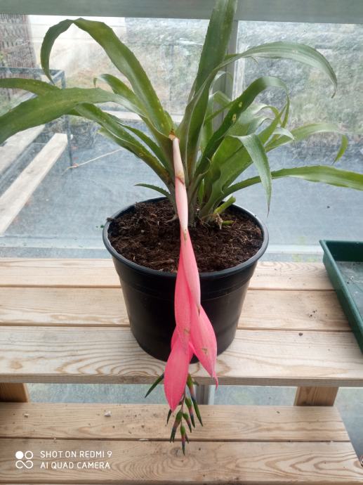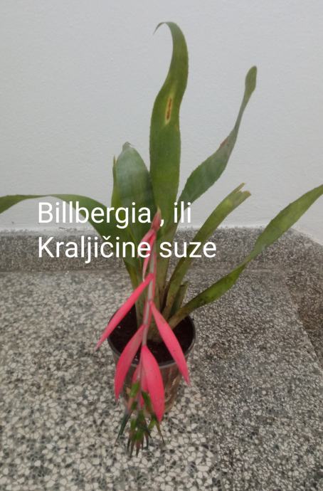 Bilbergija je biljka iz porodice bromelija. Naraste do 50 cm visine Listovi su tamnozeleni, uski i robusni , malo nazubljeni i grubi. Cvjeta kroz jesen i zimu cvjetovima koji su kao klas skupljeni na dugim, obješenim stapkama. Uzgajamo kao ukrasnu sobnu biljku. Vrlo je otporna biljka.Zimi zalijevati štedljivije i pustiti neka se zemlja malo osuši prije ponovnog zalijevanja. Odgovoara im puno svjetlosti, ne voli jedino direktno i prejako sunce Idealna temperatura za uzgoj je 16-24°C, dok zimi minimalno 10°C.