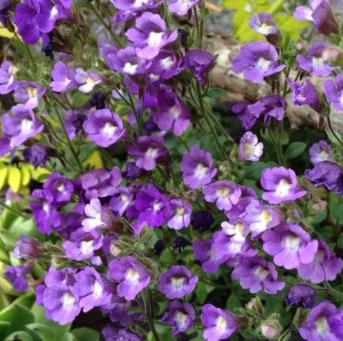 Mnoštvo nježnih ljubičasto-plavih cvjetova Chaenorhiniuma tijekom ljeta. „Patuljasti zmaj“, Chaenorhinum origanifolium, je alpska biljka sa divnom navikom širenja.