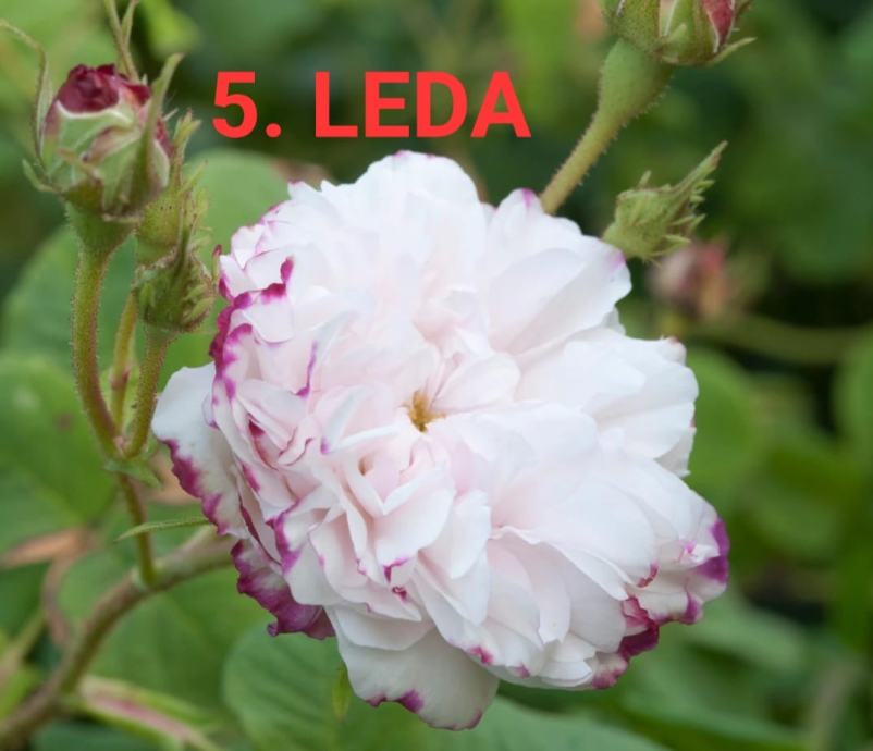 5. LEDA, bijela s nijansama roze na rubovima, puni cvijet
