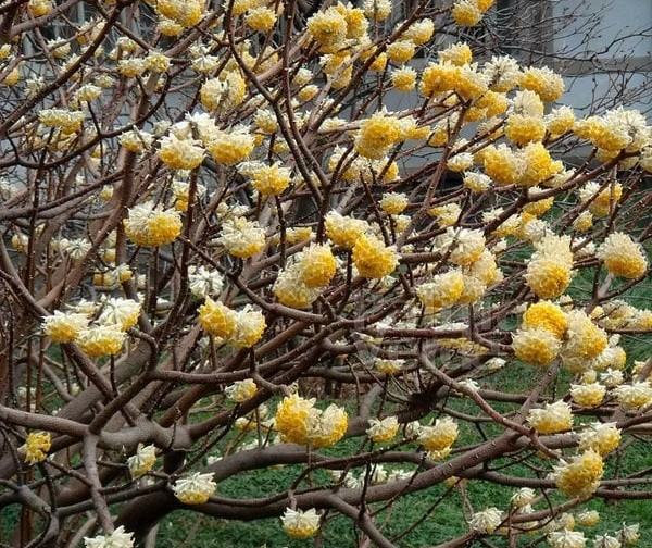 Listopadni grm porijeklom iz Kine, gdje se tradicionalno koristi za proizvodnju papira. Ovaj grm naraste do visine od 1,5 do 2 metra, slične širine, stvarajući kompaktan, zaobljen oblik. Ono što ovu biljku čini posebno atraktivnom su njeni mirisni cvjetovi, koji se pojavljuju u kasnoj zimi do ranog proljeća. Cvjetovi su zlatno-žute boje, grupirani u guste nakupine, i izuzetno su mirisni, što dodaje dašak slatkoće zimskom vrtu. Lišće je duguljasto, tamnozeleno, koje tijekom jeseni poprima bakrene tonove prije nego što otpadne.