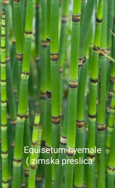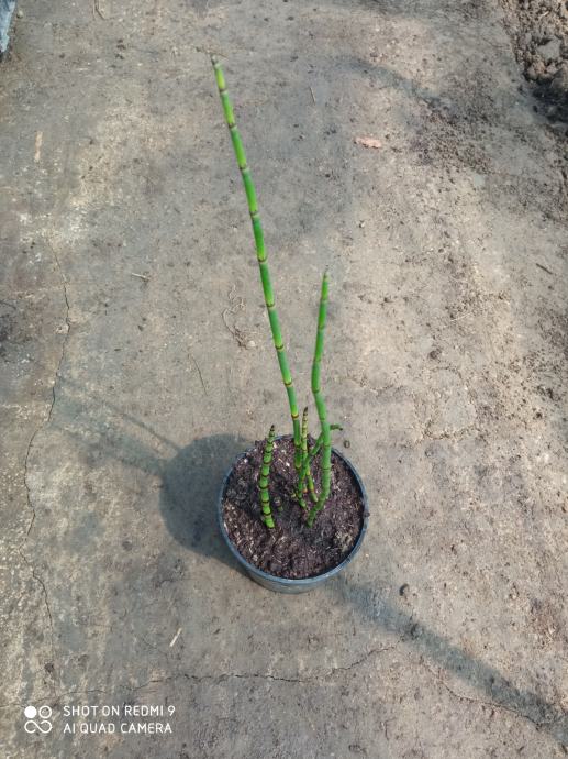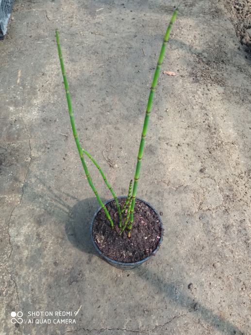 je višegodišnja busenasta zimzelena biljka koja raste u plitkim vodama ili na vlažnom tlu, osobito uz rijeke i šumske potoke. Naraste od 60 do 120 cm u visinu te 30 do 50 cm u širinu. Stabljika je šuplja, segmentirana, grube površine i zimzelena. Pepeljasto sive pruge označuju segmente stabljike.