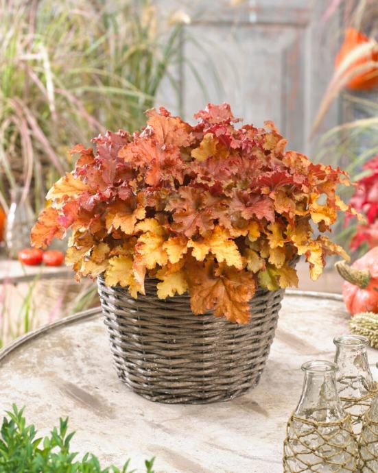 Heuchera ‘Orange Berry’ je spektakularna trajnica, koja se kiti živim narančastim lišćem koje daje vašem vrtu živahnu i pjenušavu nijansu tijekom cijele godine. Mali, nježni bijeli cvjetovi izbijaju ljeti, lebdeći iznad svijetlog lišća, stvarajući blagi kontrast i izvor nektara za oprašivače. Svestran i robustan, ‘Orange Berry’ uspijeva u nizu svjetlosnih uvjeta i idealan je kandidat za granice, kontejnere ili kao pokrivač tla, nudeći neprestani sjaj boja. Pomiješajte s dubljim, tamnijim heucherama ili biljkama s bordo lišćem za dinamičan, višegodišnji prikaz boje i teksture.