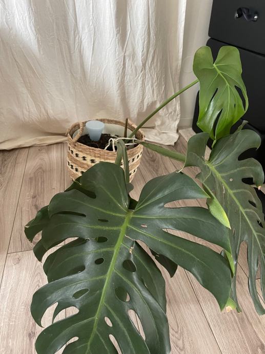 Prodajem Monsteru deliciosu u ok stanju s velikim listovima i razvijenim korijenjem koja ima tendenciju rasti dalje kada bi bila u boljim uvjetima.