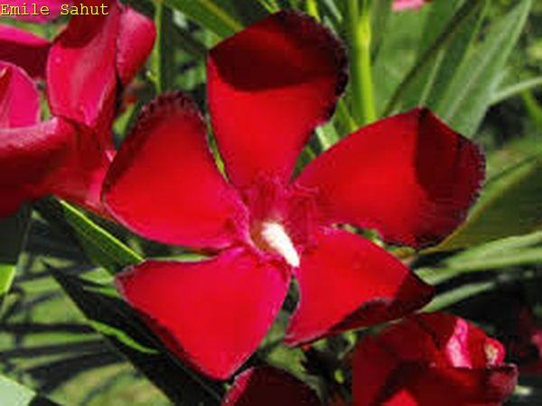 "Emile Sahut" je stari standard prosječne veličine. Raste uspravno. Međutim, staro lišće prilično rano otpada, zbog čega izgleda golo ispod. Preporučuje se da se svakog proljeća odreže jedan ili više starih izdanaka. Pupoljci "Emile Sahuta" su tamnocrveni, ponekad čak i gotovo crni. Jednostavni, blago mirisni cvjetovi također. Nažalost, oni nisu jako veliki s prosjekom od 5 cm. Trajno cvjeta, privlači poglede na velike udaljenosti.