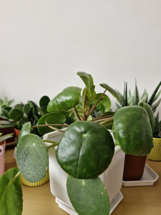 Pilea u bijeloj tegli 12x12cm , 8,00 eura.