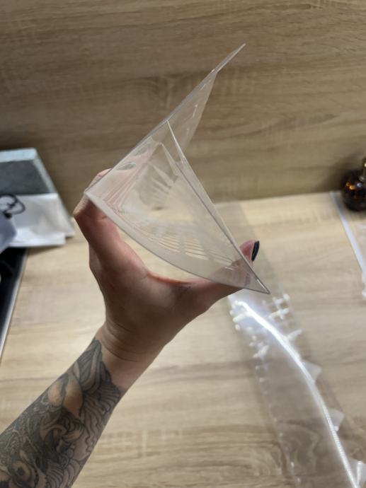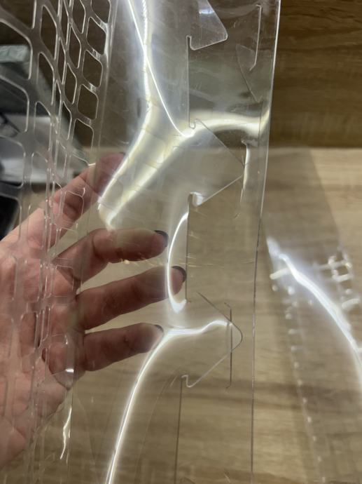 Materijal je čvrsta, savitljiva plastika. Mogu se slagati jedan na drugi ako se želi veća visina.