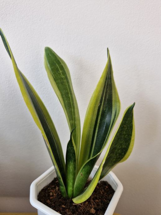 Sanseverija u bijeloj četvrtastoj tegli 12x12 cm. 7,00 eura. Visina 22 cm.