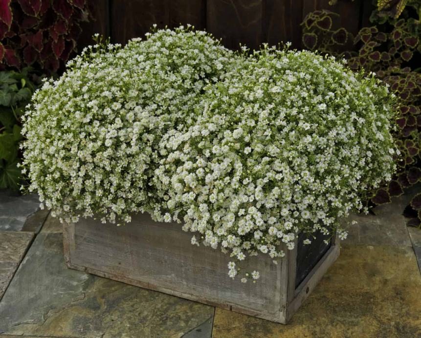 Ova niska Gypsophila cvate u rano ljeto prekrasnim bijelim cvatom. Niska sorta, predivna u kamenjarima, i prednjem planu vrtova.