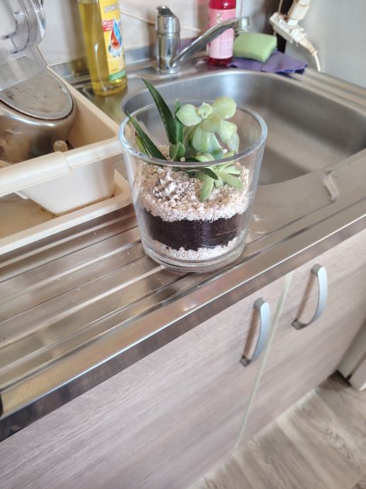 Terarij tj. staklena posuda sa živim biljkama može biti poklon koji donosi prirodu u dom Vama drage osobe. Zalijeva se jednom mjesečno sa vrlo malo vode. Terarij treba puno svjetla, ali bez direktne izloženosti suncu. Svaki terarij je ručni rad, a biljke su uzgojene osobno. Mogućnost slanja autobusom ili osobno preuzimanje.