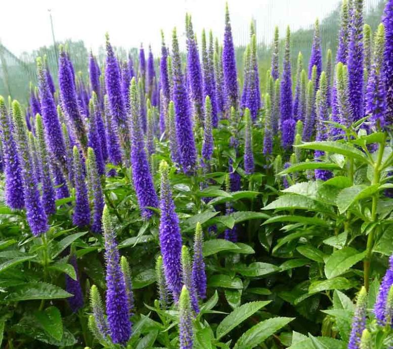 Brzo stvara formu grma zelenog lišća s gomilom dugačkih ljubičasto plavih cvjetova.