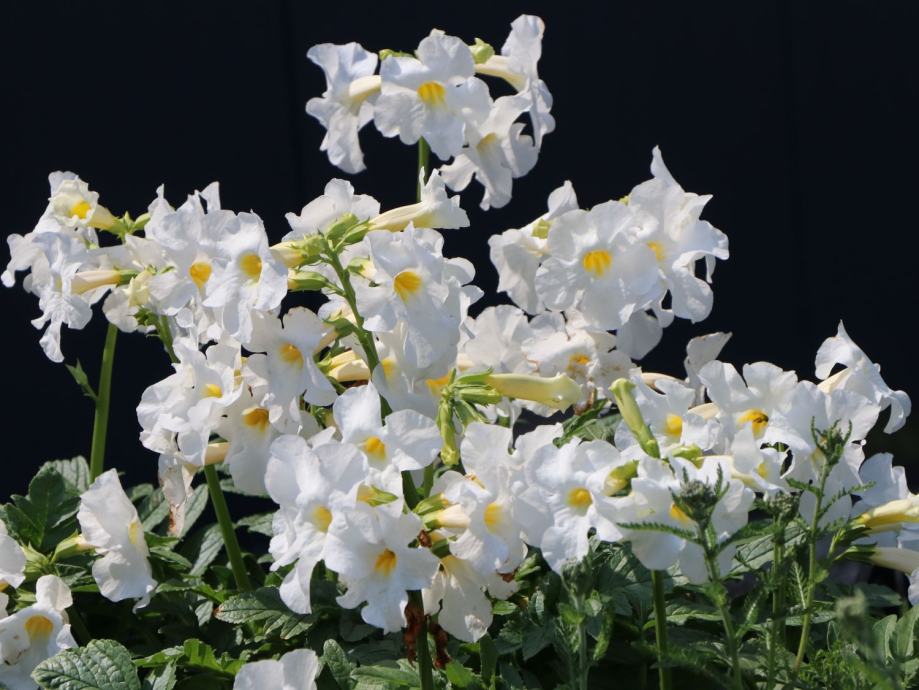 Od lipnja do kolovoza nosi visoke uspravne stabljike koje nose zadivljujuće, velike cvjetove u obliku trube.