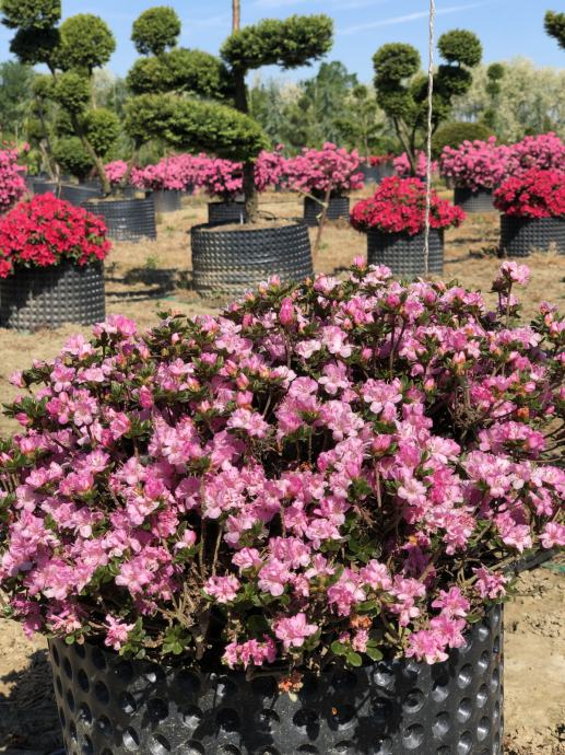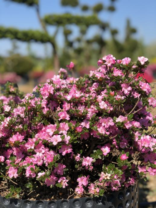 Opis: Prilično nova sorta Azalea koja vrlo bujno cvjeta, svijetlo ružićaste boje. Razdoblje cvatnje 18.5.-2.6. Mali, tamnozeleni, sjajni listovi dugi 1,2 cm.rastu gusto, okruglo i zbijeno. Nakon 10-godina visoka oko 35 cm, široka 50 cm. Lišće zadržava i zimi, vrlo je otporna do -24 °C. Pogodna za japanske vrtove i kamenjare, ali i za sadnju u tegle. Za pravilan rast azaleja poželjno je kiselo tlo između 4,5 i 5,5 pH.