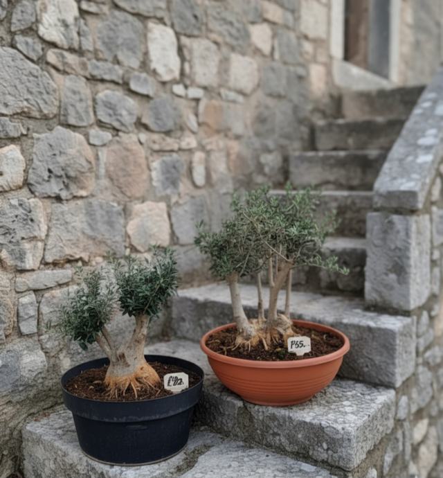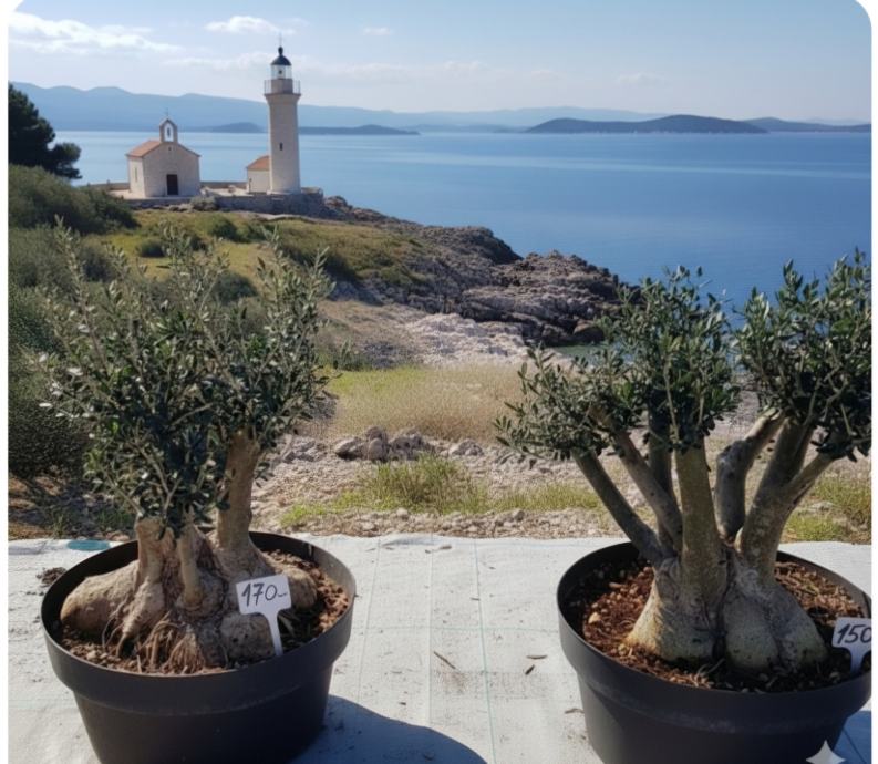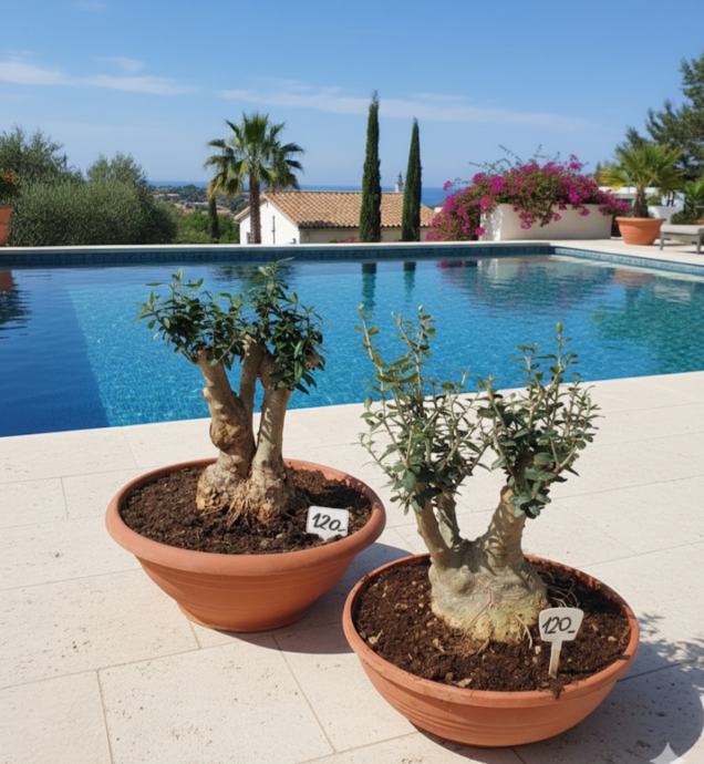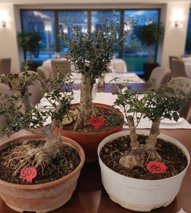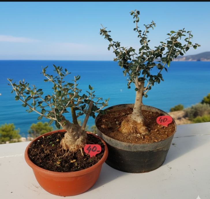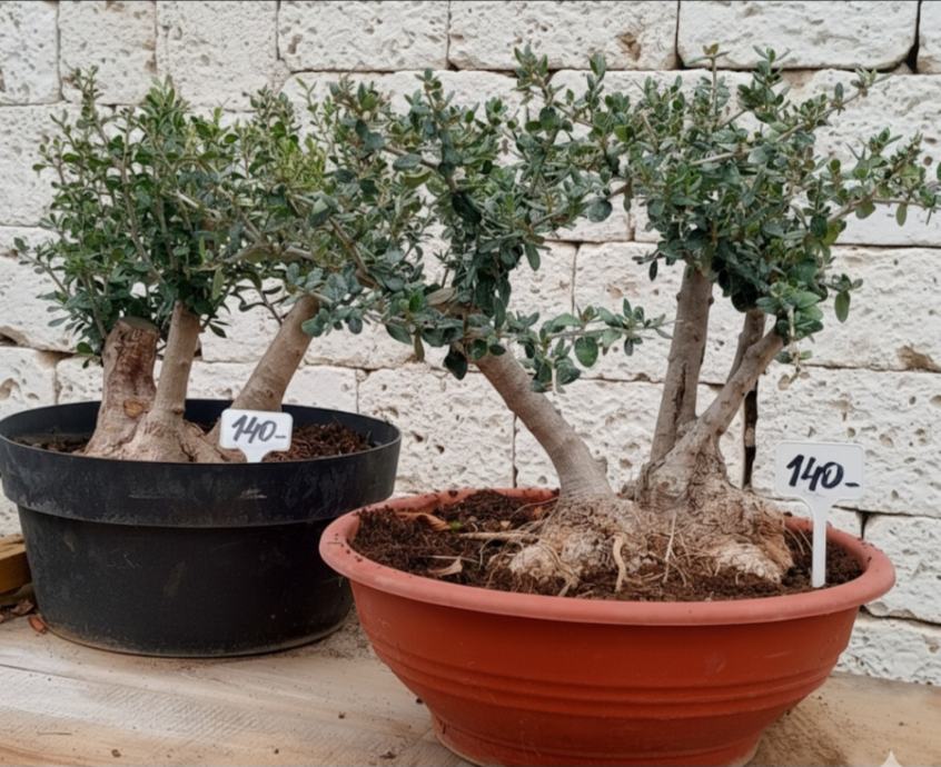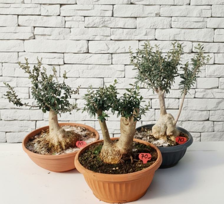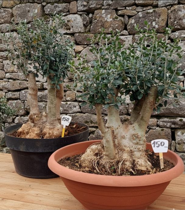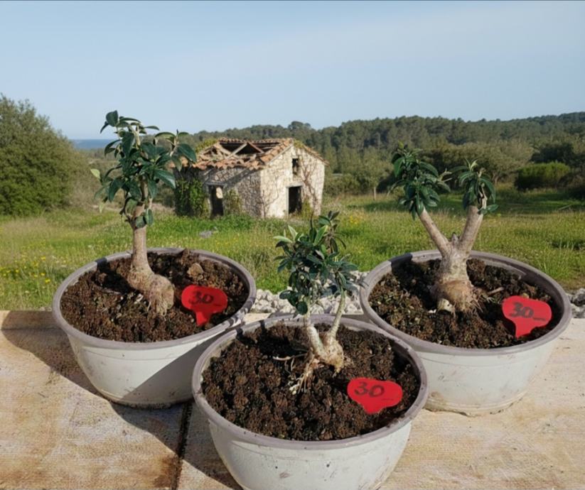Masline "bonsai forma" iz vlastitog prirodnog uzgoja, bez savijanja grana i upotrebe žice ( samo rezidba). Različiti oblici, forme, veličine, starost i cijene od 30-300€. ( vidljivo na slikama ).