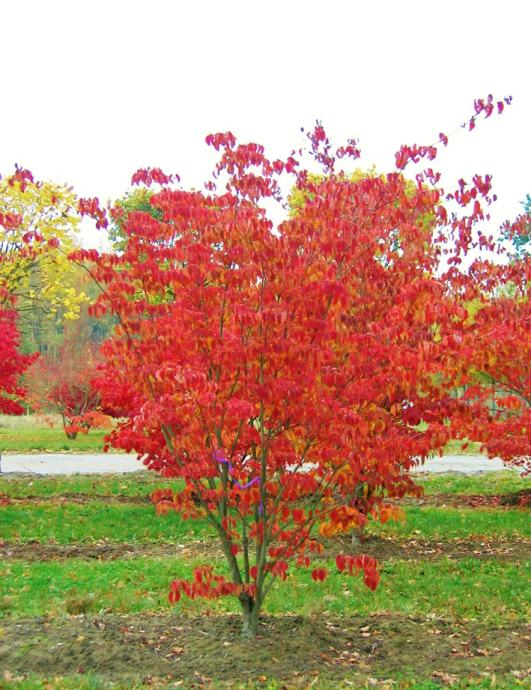 U jesen nudi spektakularnu crveno-ljubičastu boju. Kinesko Dogwood može se razlikovati od vrsta od nešto većih cvjetnih kolica, voća i lišća. Sadi se kao primjerak ili u malim grupama za dramatičan učinak.