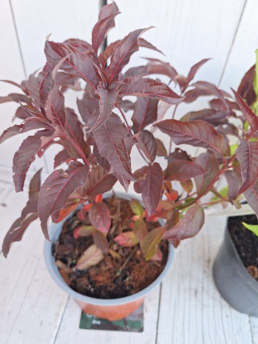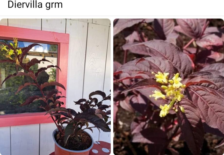 Grmić koji ima efektni tamnocrveni list i žuti cvijet koji cvate u ljeti.