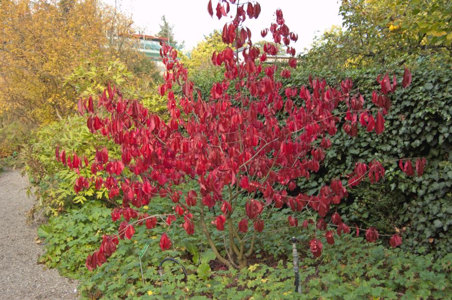 Ima krem-zelene cvjetove u lipnju. U jesen plodovi nalik svjetiljci, u početku briljantno bijelo i polako se prožimaju ružičastim. Crvena sjemena mogu se vidjeti iznutra dok se otvaraju i uskoro ispadnu. Listovi pocrvene u jesen.
