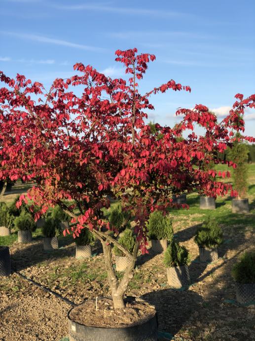 Euonymus alatus je poznat po impresivno crvenoj boji lišća na jesen, ljubičasto crvenim plodovima koji sazrijevaju na jesen i koji su interesantni nekim pticama. To je listopadni grm oblikovan u obliku malog vrtnog drvca, sporog je rasta i minimalnih zahtjeva za uzgoj, ima interesantno izbrazdanu koru po granama, dobro podnosi orezivanje i oblikovanje.