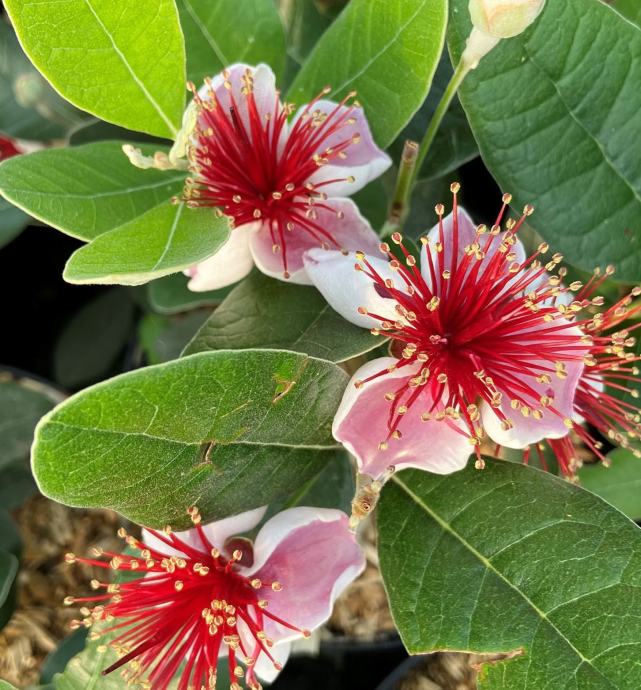 Feijoa je malo zimzeleno stablo. Odličan je spoj ukrasnog stabla i voća. Cvate dekorativnim cvjetovima koji su i jestivi i daje ukusne plodove.