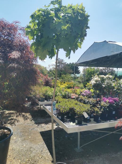 Krošnja kuglastog javora je ovalno široka, često isto toliko široka koliko i visoka (okrugla).