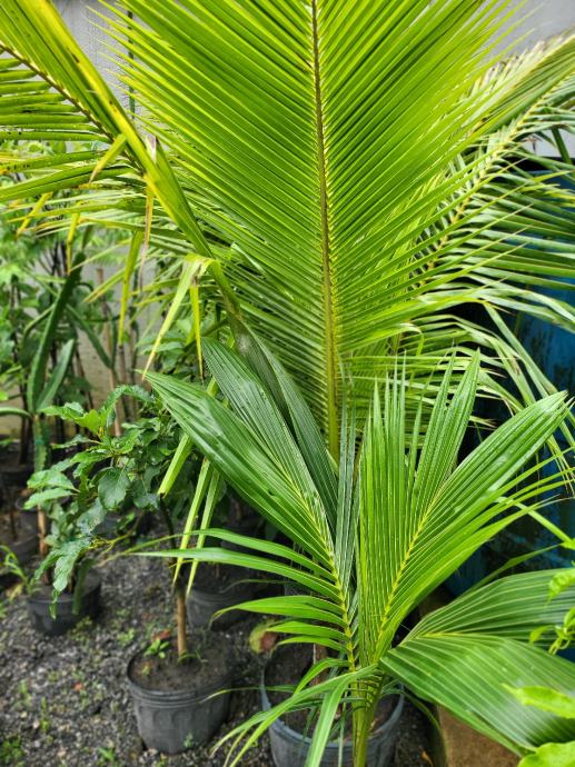 Kokos palma (Coco palm) oko 10 godina stara, visoka oko 2.5 metara. Voli podjednako i unutarnji i vanjski prostor te se prodaje ispod stvarne cijene. Kokos palma je idealna za ukrasit neki kut u vasem domu, terasu, vrt, unutrasnjost bara ili restorana, te predvorja hotela. Uz palmu se dobijete I jutena obloga za dekor pitara. Listovi kokosove palme se mogu svezati tako da ne zauzima puno mjesta. Prodajem jer je nemam vise gdje drzati.
