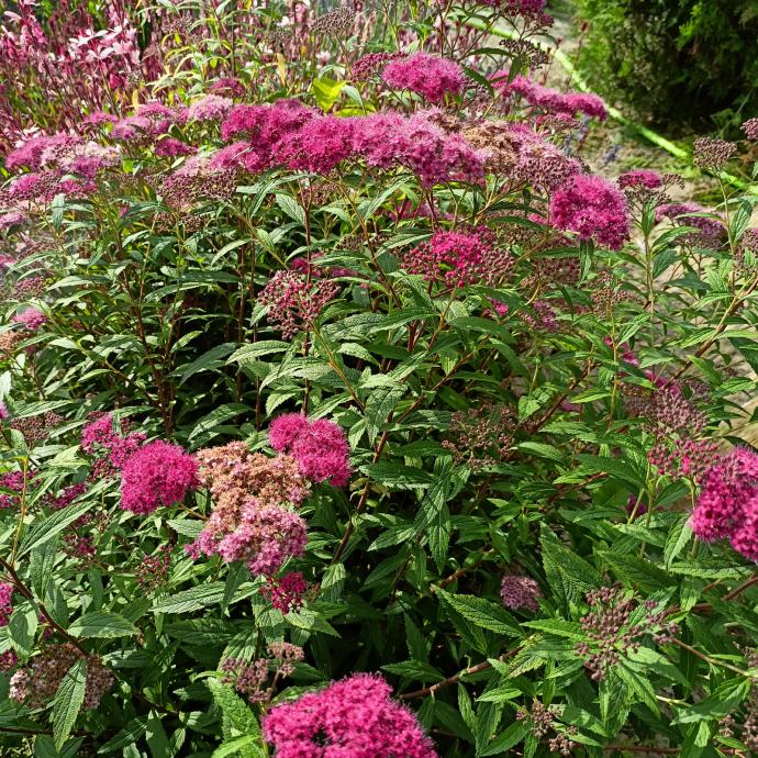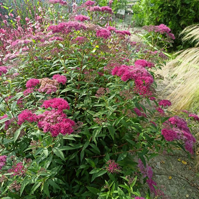 Spirea raste do visine cca 80-1,00 m cvijeta ljubičastim štitastim cvijetovima tjekom cijelog ljeta.