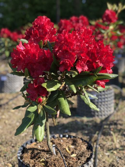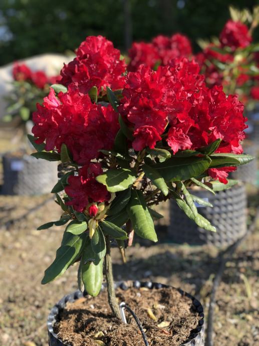 Opis: Rododendron 'Busuki' je otporni hibridni rododendron poznat po svom gustom, grmolikom rastu i tamnocrvenim cvjetovima u kasno proljeće. To je snažan zimzeleni grm koji doseže visinu od oko 1,5 metara u 10 godina. 'Busuki' je hibrid uzgojen u Njemačkoj. Uspijeva u kiselom, dobro dreniranom tlu i preferira djelomičnu sjenu. Smatra se otpornim.