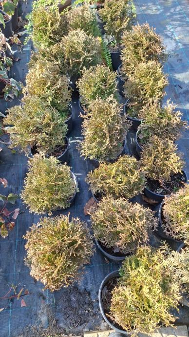 Nudimo Thuju Danicu, popularnu ukrasnu četinjačicu koja raste u obliku kompaktne kugle. Ova sorta tuje održava pravilni kuglasti oblik bez potrebe za českim orezivanjem, što je čini izuzetno praktičnom za vrtove, terase i rubove staza.