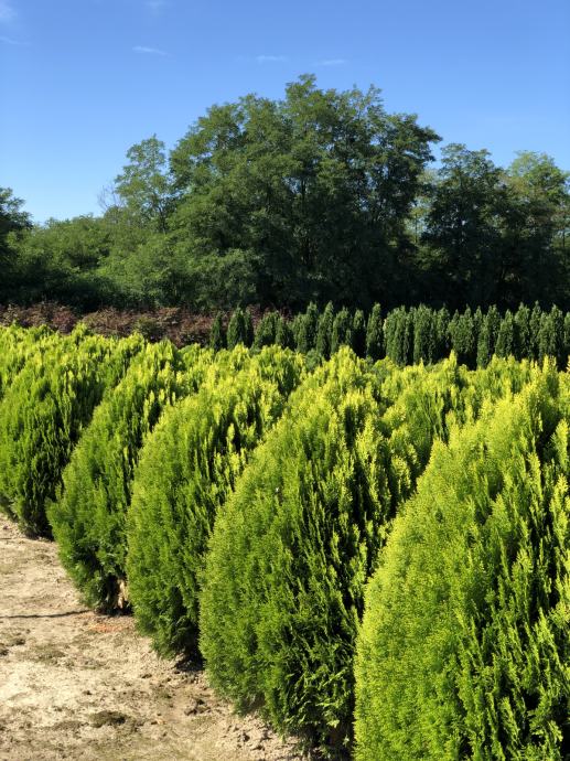Prodajem različite vrste tuja, čempresa i juniperusa za formiranje zelenih zimzelenih ograda 180-230 cm, te spororastuće tuje za grupnu sadnju ili bordure visine 80-120 cm. Slike sadnica priložene. Međimurska županija.