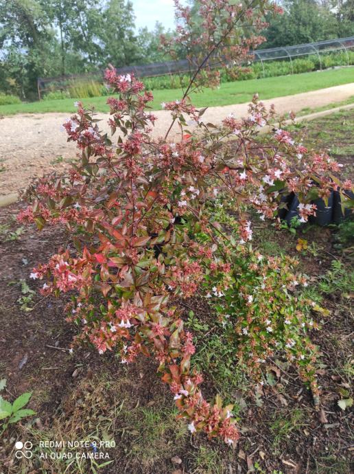 Abelija je poluzimzeleni grm s padajućim granama i kuglastog oblika koji može narasti do 1,5 metra visine i 1,5 metara širine.