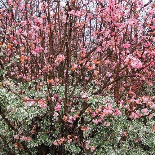 Vrlo otporan, listopadni grm do 3 m koji daje guste grozdove jako mirisnih, tamno ružičastih cvjetova koji s vremenom izblijede u ružičastu boju šećerne vate, a na kraju pobijele do kasnog proljeća. Cvate od siječnja do ožujka. Ljeti nastaju atraktivne okrugle ljubičaste bobice. Volu potpuno sunce ili djelomičnu sjenu.
