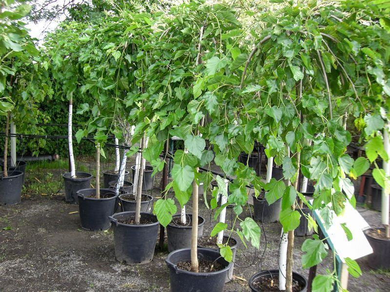Morus alba pendula ili žalosni dud ima oblik otvorenog kišobrana koji formira krošnja spuštajući se do zemlje. Visina 200-220cm.