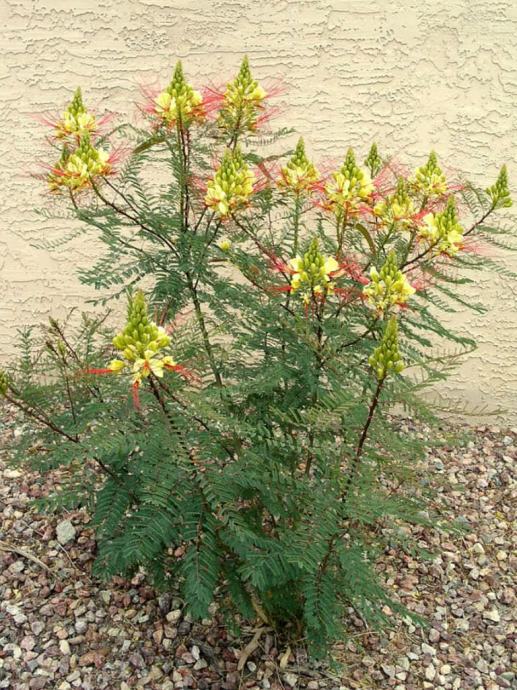 Žuta rajska ptica je listopadni grm ili manje stablo koji naraste do 5 m visine.