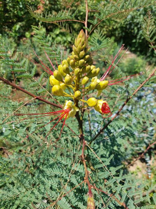Cvate od lipnja do kolovoza žutim cvjetovima sa crvenim prašnicima.
