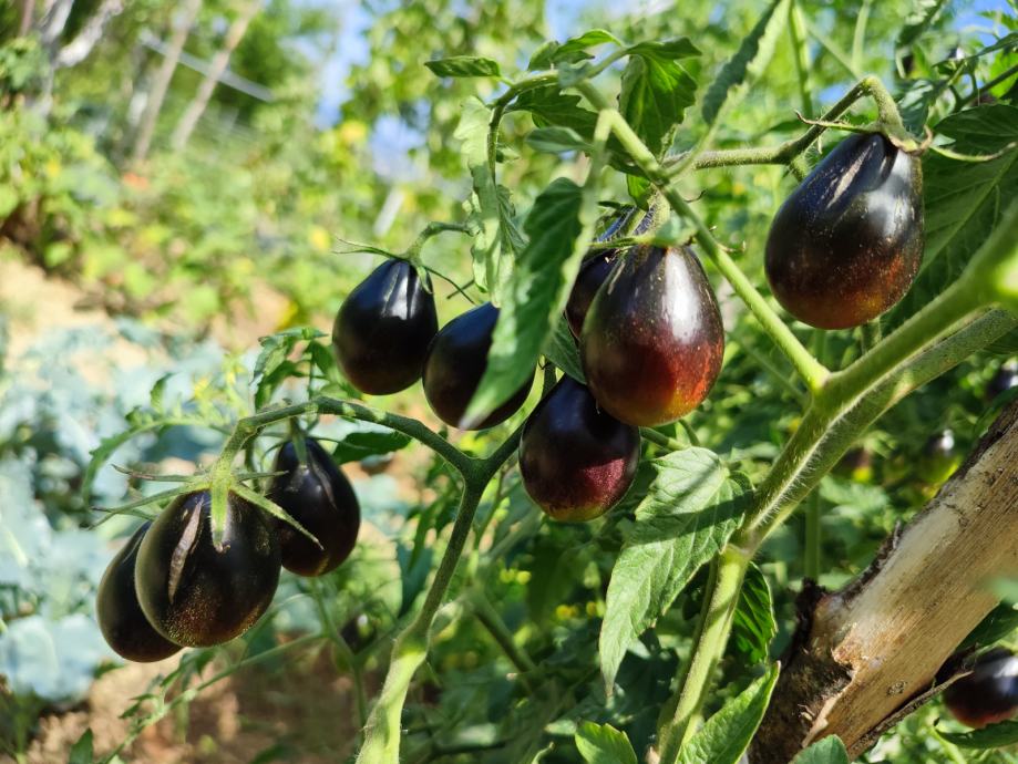 Blue Keyes, indigo kruškolika cherry rajčica veličine oko 3cm, izvanredan okus, kasnija sorta, odlična za uzgoj na potpuno osunčanoj poziciji. Indeterminantna sorta. 10 sjemenki u paketiću.