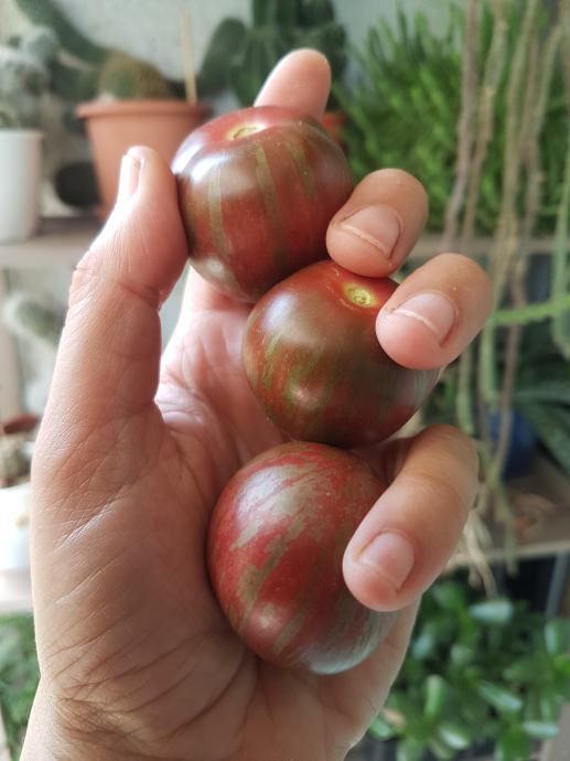 Sjeme je od rajčica iz vlastitog bio uzgoja, ničim umjetnim špricano, tretirano vlastitim kompostom i pripravcima od koprive i sl. Ovo su sve starinske sorte, nisu F1 hibridi, sjeme daje istu biljku.