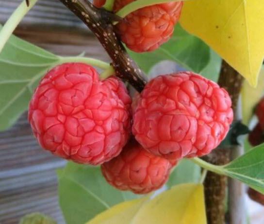 Maclura tricuspidata- nisko stablo koje može narasti do 4 m. Lista i cvate u kasno proljeće, nakon jabuka. Obična Cudrania Tricuspidata ima muške i ženske biljke, pa su za stvaranje plodova kod takvih sadnica potrebna dvije sadnice. Cvjetovi se pojavljuju u lipnju i zelene su boje i veličine graška,a muški cvjetovi postaju žuti nakon što pelud sazrije. Biljka se oprašuje putem vjetra. Plodovi su okruglasti, veličine 2-5cm(2,5 cm promjera) veličine ping pong loptice, crvene boje okusa lubenice i šećerne vune, sazrijevaju u jesen, dok u toplijim krajevima i kasnije. Plodovi kada su potpuno zreli, jako su ukusni mješavina su duda i smokve,ako otkinte plod iz peteljke curi bijeli sok slično kao kod smokve.U hladnijim krajevima gdje listovi ranije otpadaju, plodovi ostaju na stablu i izgledaju atraktivno, pa ponekad su čak i pod snijegom. Ova voćka je otporna na niske temperature (-25C). U toplijim krajevima, biljka je zimzelena.Može rasti u USDA zonama 6-9.