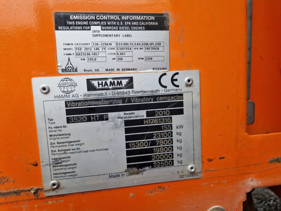 Prodajem valjak HAMM 3520 HT P u odličnom stanju. 2010.godiste, 20t. Motor 155kW, 6500 radnih sati.