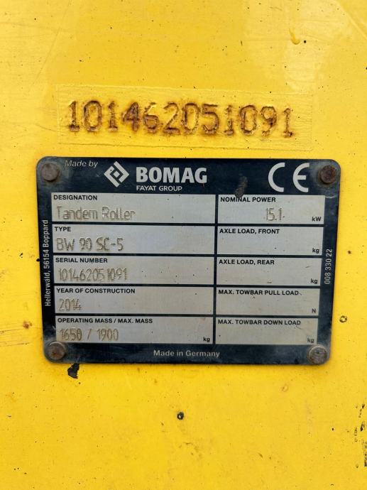 Valjak Bomag BW90, 2014 godina, 3785 radnih sati, stroj je radnom stanju spreman odmah za rad.