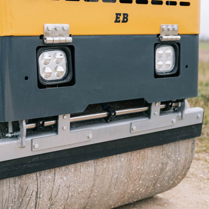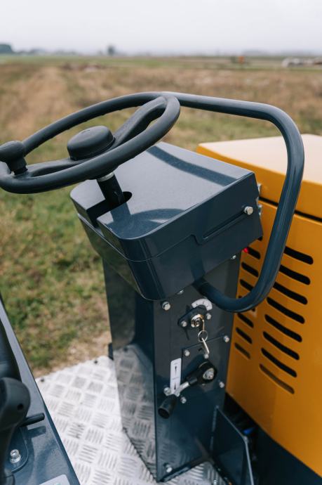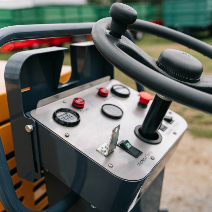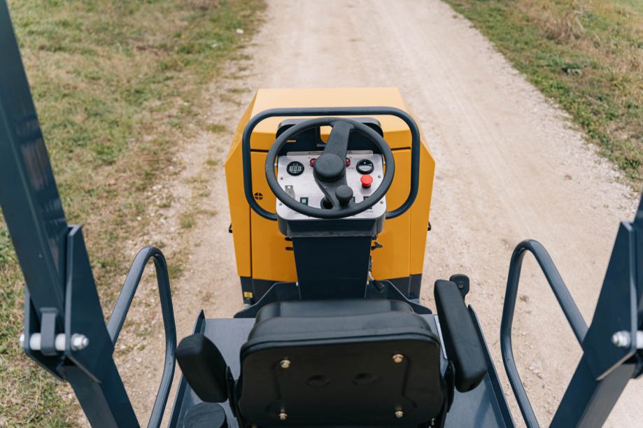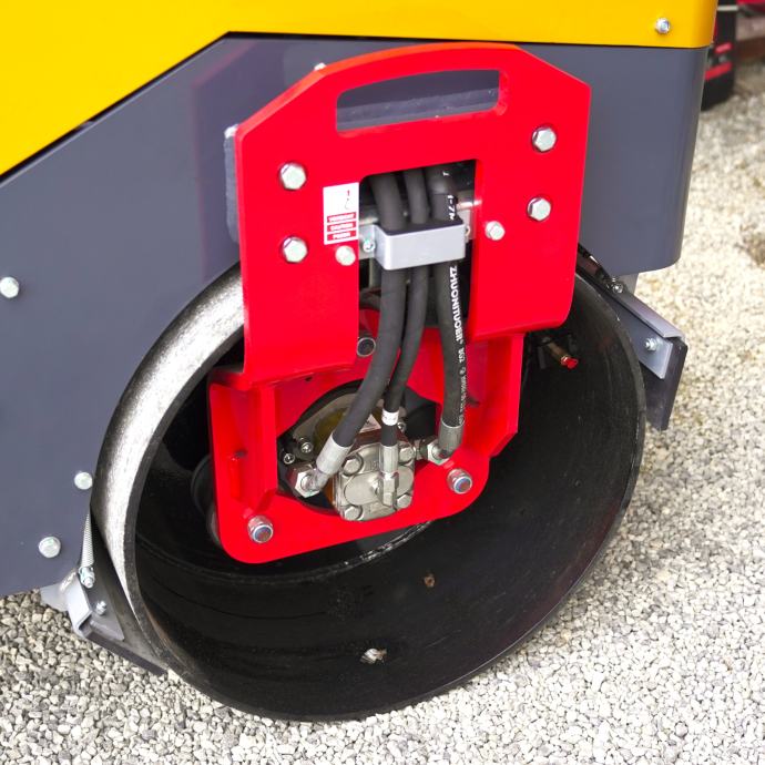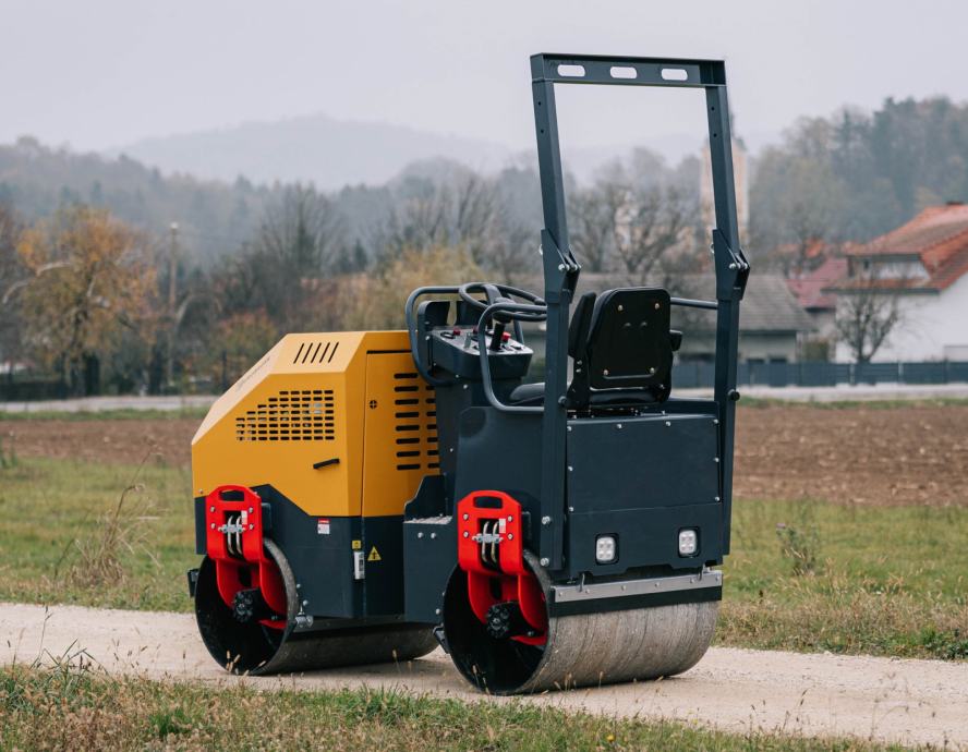 Bubnjevi širine 900 mm i vibracijsko-hidraulično djelovanje omogućuju ravnomjerno i snažno zbijanje. Valjak dostiže brzinu do 8 km/h, a njegova masa od 1.500 kg osigurava dobar pritisak na podlogu. Opremljen je rezervoarom za vodu od 100 l za prskanje, 60 l hidrauličnog ulja, LED radnim svjetlima, sklopivim sigurnosnim lukom i zaštitnim pokrovom upravljačke ploče. Zahvaljujući kompaktnoj konstrukciji i maksimalnom nagibu od 30°, prikladan je i za teren s umjerenim usponom.