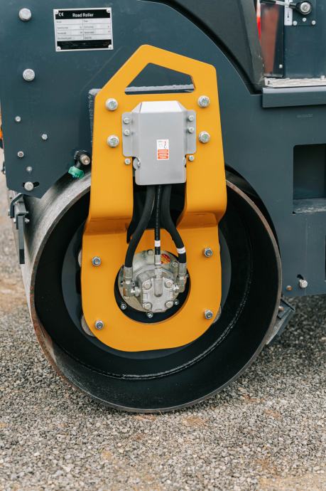 Bubnjevi dimenzija φ700 × 1.200 mm omogućuju široku radnu površinu, a vibracijski sustav s amplitudom od 0,5 mm osigurava učinkovito zbijanje i ravnomjeran rezultat. Hidrauličke komponente renomiranih proizvođača (Zaneda, Poclain, Danfoss) doprinose pouzdanosti i preciznom radu. Sa statičkim opterećenjem od 125 N/cm sprijeda i 115 N/cm straga, valjak postiže dobro ravnotežu između težine, vibracija i prijenosa sile na podlogu.